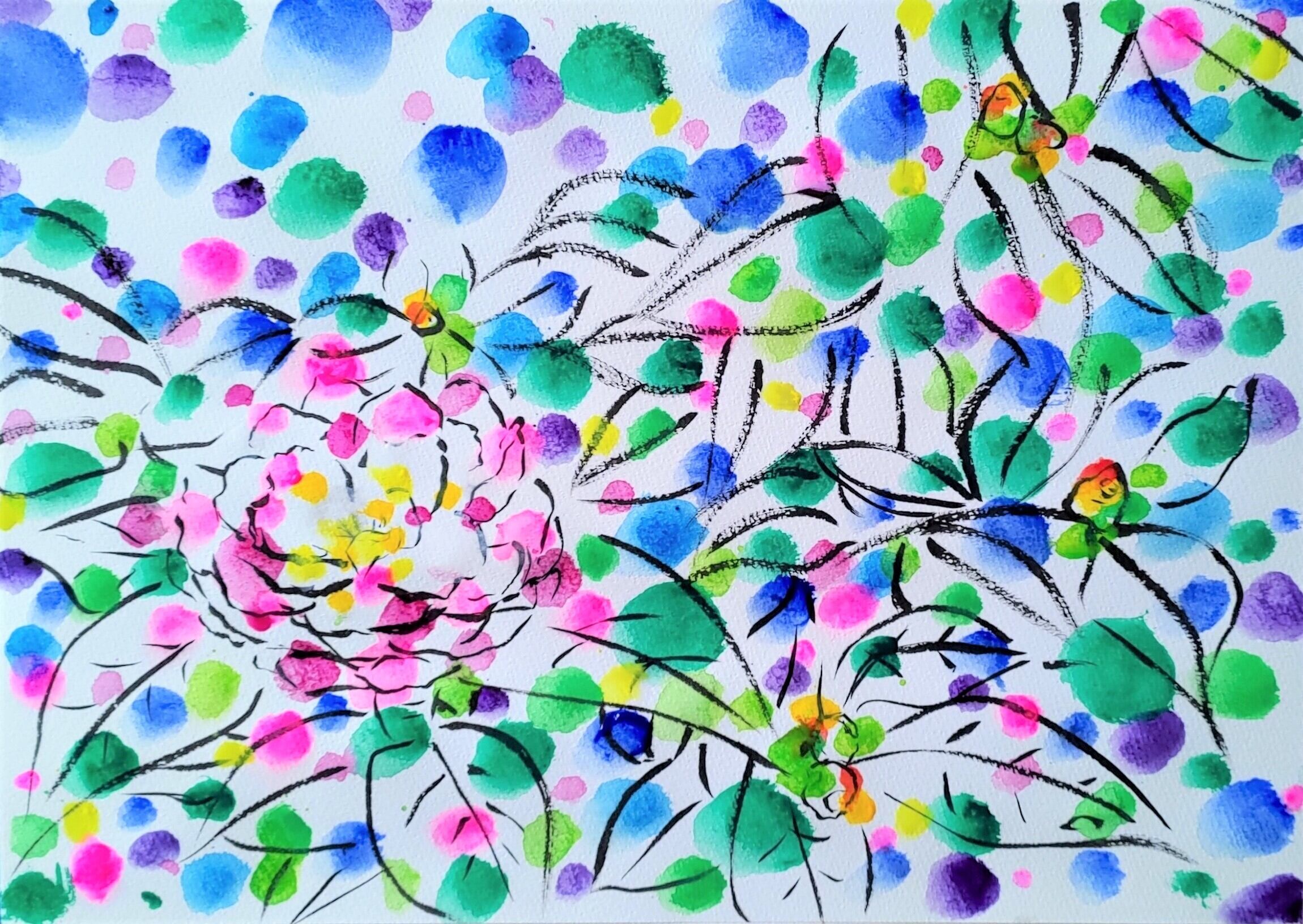 素材:墨・AQYLA(アルキド樹脂絵の具)・紙